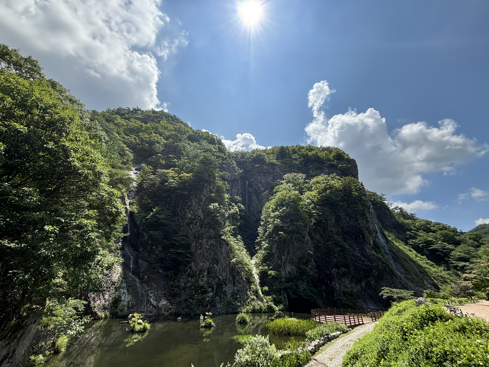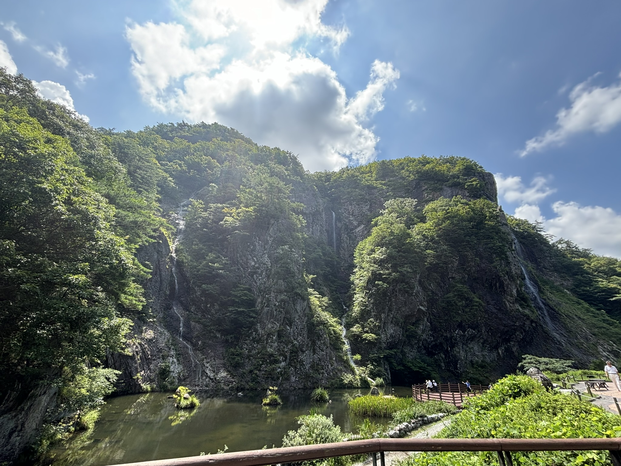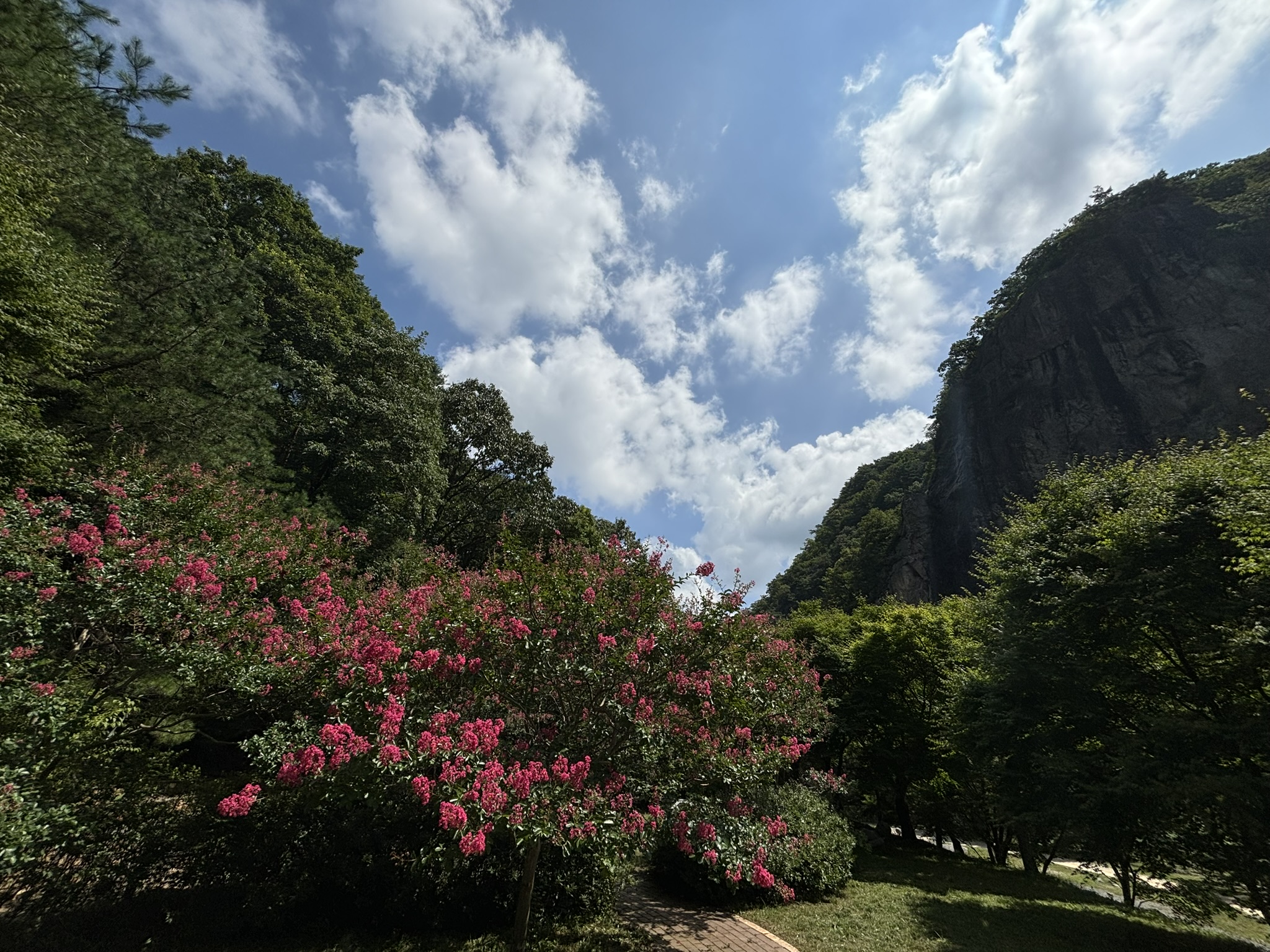 입구에서 조금 걸어 들어가니 병풍폭포가 시원하게 맞아준다.