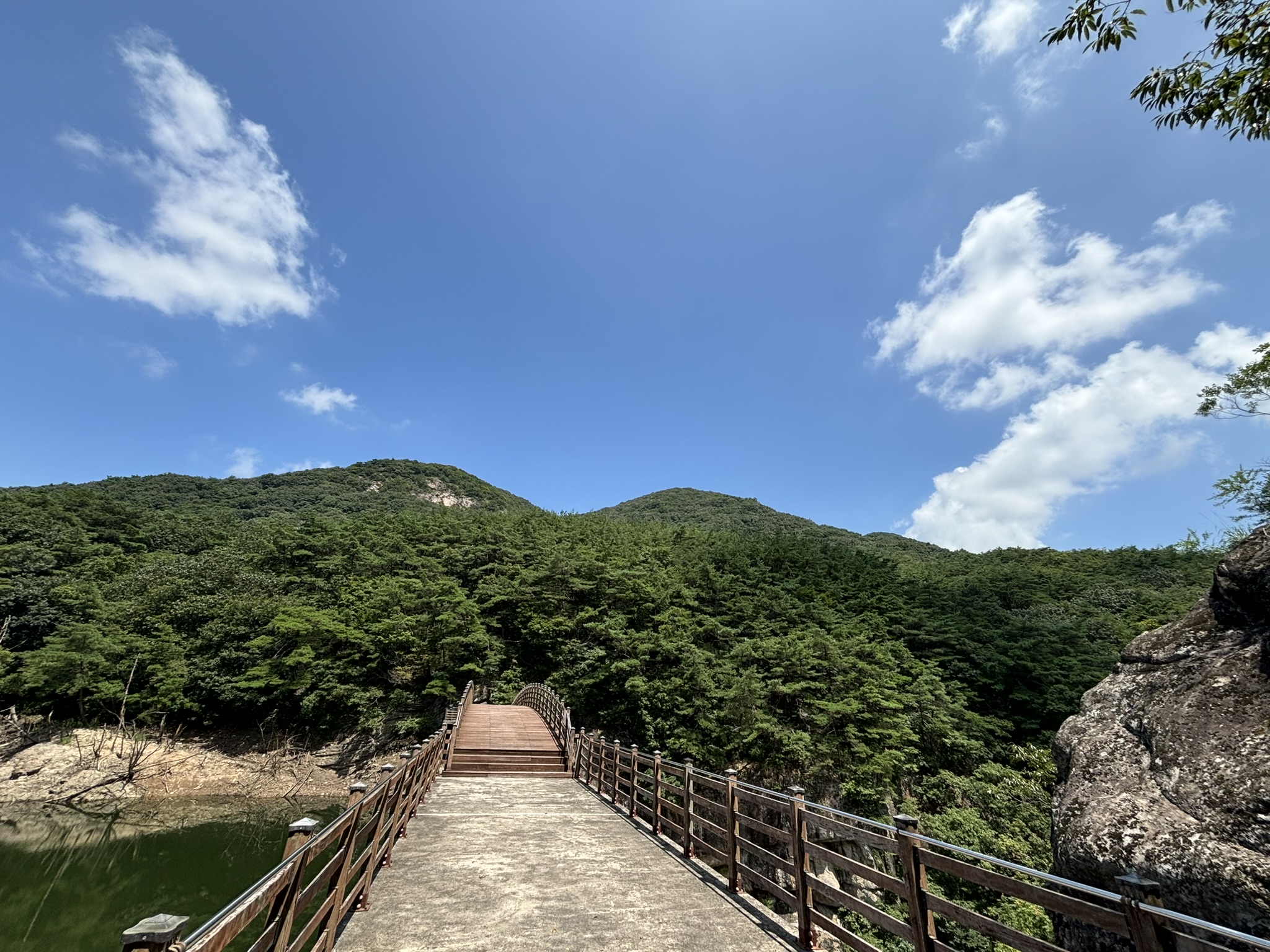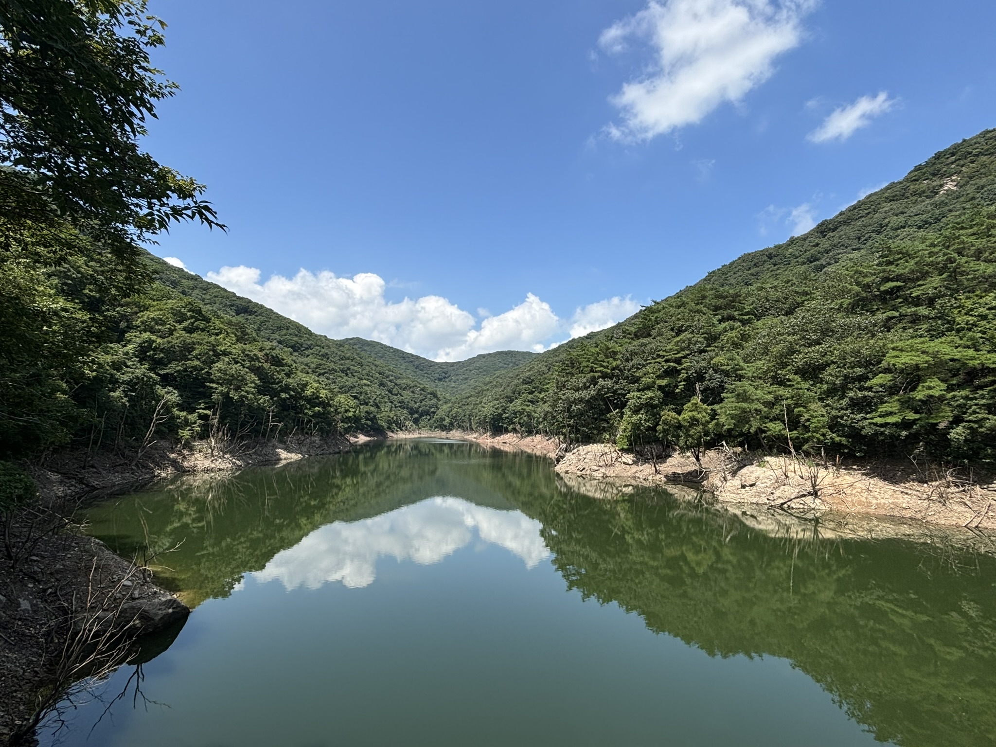 가까운 정자에서 잠깐 쉬었다가 강천 저수지까지 갔는데, 날이 너무 더워 아쉬음을 뒤로 한 채 내려왔다.
