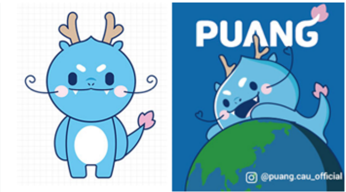중앙대학교의 순우리말 사용은 학교 마스코트에도 드러난다. 중앙대학교의 마스코트는 청룡 캐릭터로 이름은 ‘푸앙’이다. ‘푸앙’은 청룡의 순우리말인 ‘푸르미르’와 ‘중앙대학교’에서 한 글자씩 따서 지은 이름으로, 청룡상이 세워진 지 50년 만에 깨어난 아기 청룡이다. 이 이름은 중앙대학교 학생들 사이에서 인기가 대단한데, 어감이 귀엽고 아기 청룡이 “푸앙-”하는 소리를 낼 것 같다는 이유를 들곤 한다. 중앙대학교의 기숙사 이름인 블루미르홀의 ‘미르’ 또한 청룡의 순우리말에서 따왔다.