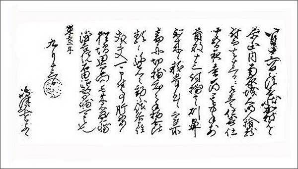 ▲ 조선에서 소금에 절여 보낸 코를 확인한 도요토미 히데요시가 부대장에게 보낸 ’코감사장‘, 가고시마현(鹿兒島縣) 역사자료센터 제공