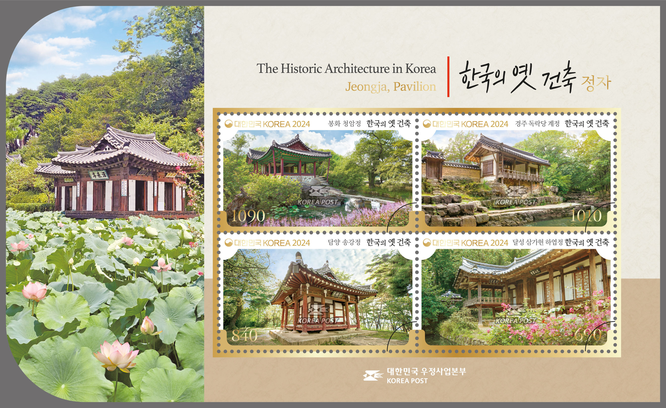 조선 시대 건축물은 자연경관과 아름답게 조화를 이루도록 지은 것이 특징이며, 이는 성리학적 정신세계가 반영된 것이라 설명할 수 있습니다. 우정사업본부는 ‘한국의 옛 건축(정자)’ 기념우표에 자연과 어우러진 고즈넉한 정자 4곳을 소개합니다.