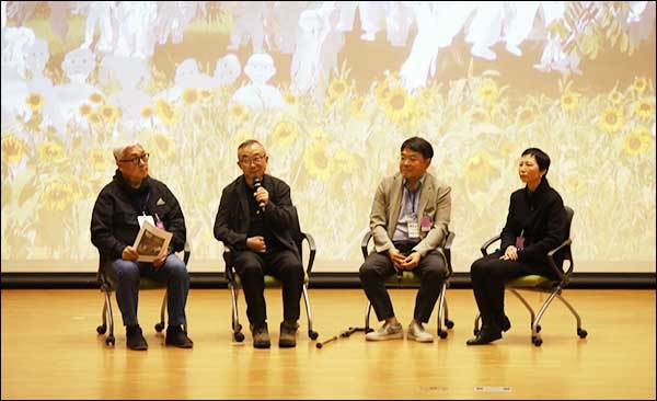 ▲ 시사회가 끝난 뒤 청중들과 질의 응답하는 김태영 감독 외 관계자들