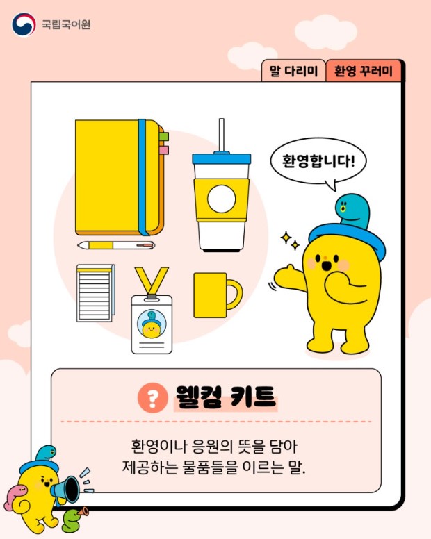 너랑이가 알려 주는 말 다리미, ‘웰컴 키트’를 우리말로 다듬어요!