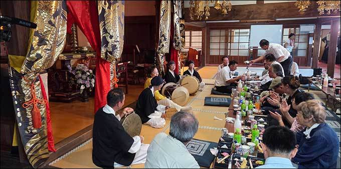 ▲ 2부 행사는 관음사 본당(한국의 대웅전)에서 재일동포 탄고단(誕古團)의 사물놀이와 함께 친교의 시간을 가졌다.