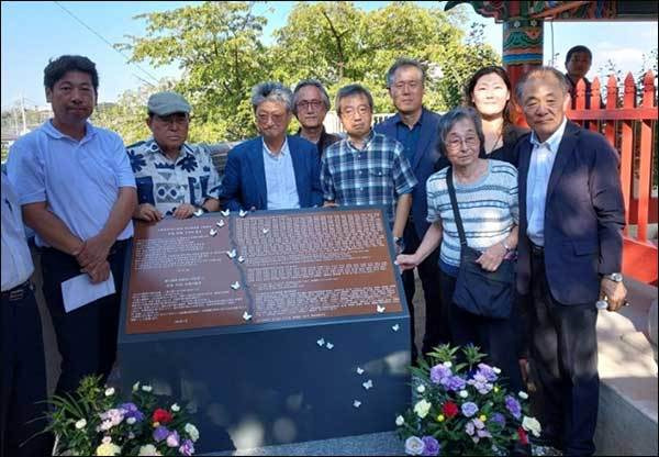 정종배 시인은 《1923관동대학살 -생존자의 증언》(2023)을 쓴 작가로 지난 8월 25일(월) 현지에 도착하 여 조선인 여섯명이 처참하게 학살당한 장소까지 불볕더위를 아랑곳하지 않고 10리길을 걸었다고 했 다. 그가 흘린 비지땀은 피눈물이었으리라. 그는 이번 개보수완공 기념식에 참석한 뒤 시 한편을 써서 기자에게 보내왔다.