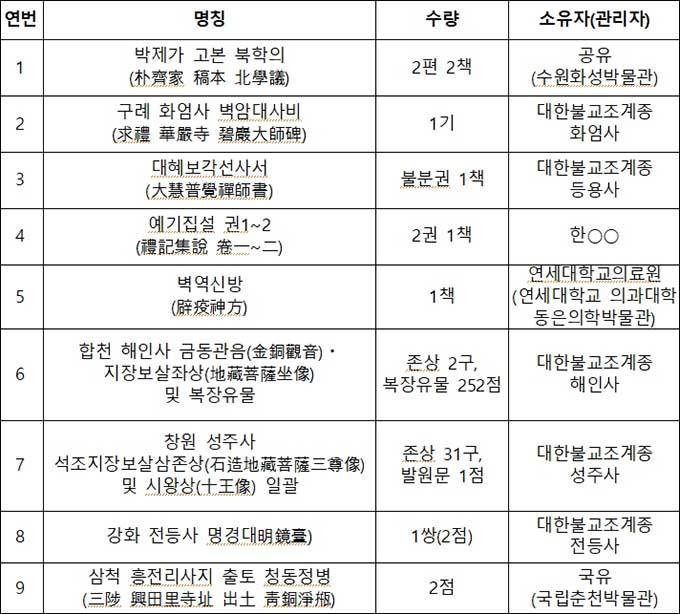 ▲ 국가지정문화유산(보물) 지정 목록
