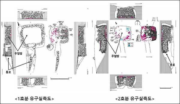 ▲ 1호분 및 2호분 유구실측도