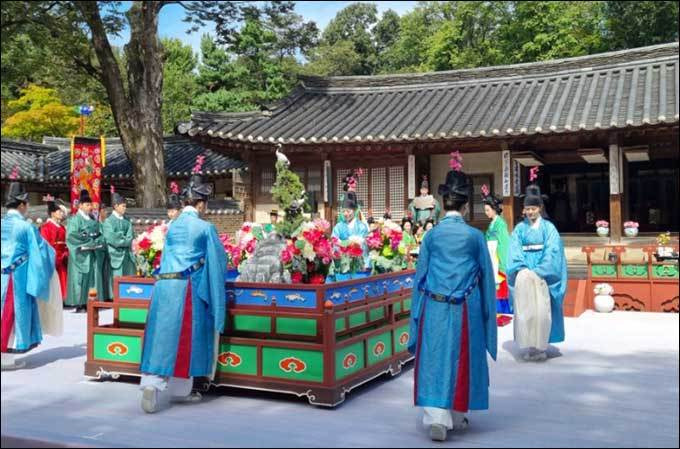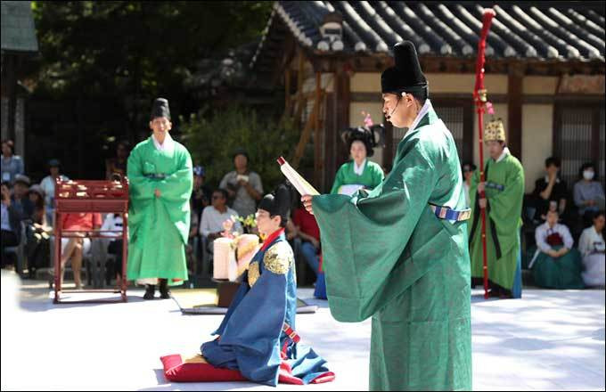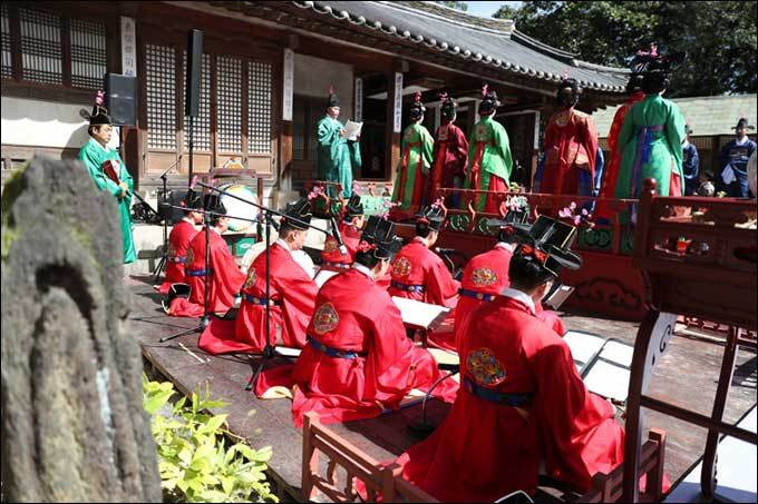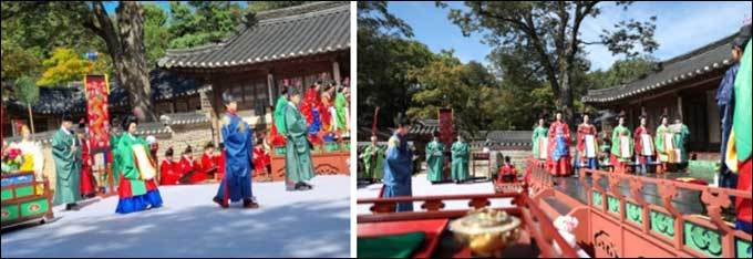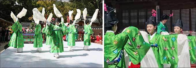 이 《의궤(儀軌)》는 2007년에 유네스코에 의헤 세계 기록유산으로 지정되었거니와, 이 기록 속에 잠자고 있던 주인공들의 거동과 음악과 춤과 노래 등 모든 유산은 한국예술종합학교 부설 세계민족무용연구소가 국가유산청 등과 협력해 2006년부터 실제로 복원해 해마다 시연하고 있다. 필자는 이 공연 소식을 듣고는 있었지만 실제로 참관할 기회가 없어 궁금하기만 했는데 이달 말 경주에서의 APEC 회의 공개를 앞두고 창덕궁 후원 연경당에서 이틀 동안 열린 공연의 하루를 현장에서 보는 소중한 시간을 가질 수 있었다.