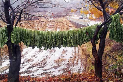 이제 김장철이 다가왔습니다. 이때 김장을 마친 뒤에 집집이 무청을 말리던 정경이 그립습니다. 새파란 무청이 꾸득꾸득 말라갈 때 처마 밑으로 옮겨 달아 매두었다가 한겨울에 시래기 우거지국을 해 먹으면 밥 한 그릇을 후딱 해치울 정도로 꿀맛이었던 기억이 새롭습니다. 지금도 지방에서는 무청 말리기가 중요한 겨우살이 준비지요. 참 무청을 말려서 만든 것은 ‘시래기’라고 하지만, 배추 걷대를 말린 것은 우거지라고 합니다. 하지만, 국립국어원에 따르면 무청 혹은 배춧잎 말린 것 모두 시래기라고 표기할 수 있습니다. 따라서 시래기나 우거지는 무청이나 배춧잎을 말린 것을 뜻하는 한국의 전통 식재료입니다.