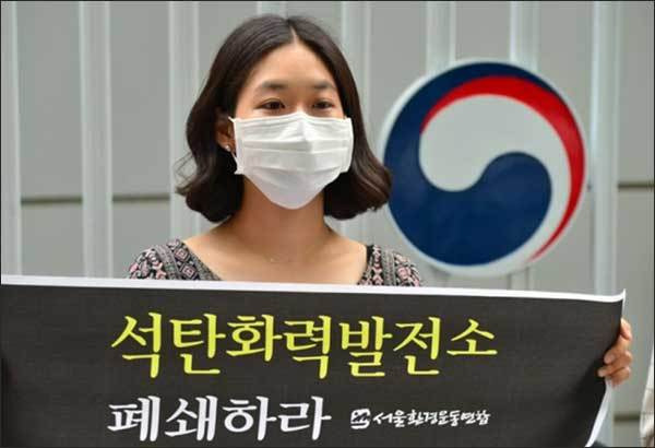 ▲ 강릉 안인 화력 발전소 건설을 반대하는 환경운동연합 회원 시위