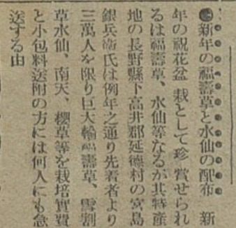 ▲ 1934년 11월 10일치 <부산일보> 2면 11단에 <신년 복수초와 수선화 배포> 기사