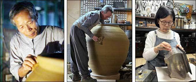 ▲ 국가무형유산 「옹기장」 보유자로 인정 예고된 방춘웅 씨, 「옹기장」 보유자로 인정 예고된 이학수 씨, 「입사장」 보유자로 인정 예고된 승경란 씨(왼쪽부터)