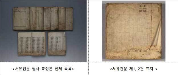 국가유산청(청장 허민)은 「서유견문 필사 교정본」을 국가등록문화유산으로 등록하였다. 「서유견문 필사 교정본」은 한말 정치가이자 사상가인 유길준이 미국 유학 당시의 경험을 국한문혼용체로 기록한 《서유견문》의 교정 원고본으로, 모두 1건 9책으로 구성되어 있다. 《서유견문》은 서양 각국의 지리, 역사, 행정, 풍속 등을 20편*에 걸쳐 근대식 백과사전식으로 정리한 소개서로 19세기 조선인의 시각에서 세계정세와 서양 문물을 이해할 수 있는 중요한 자료다.