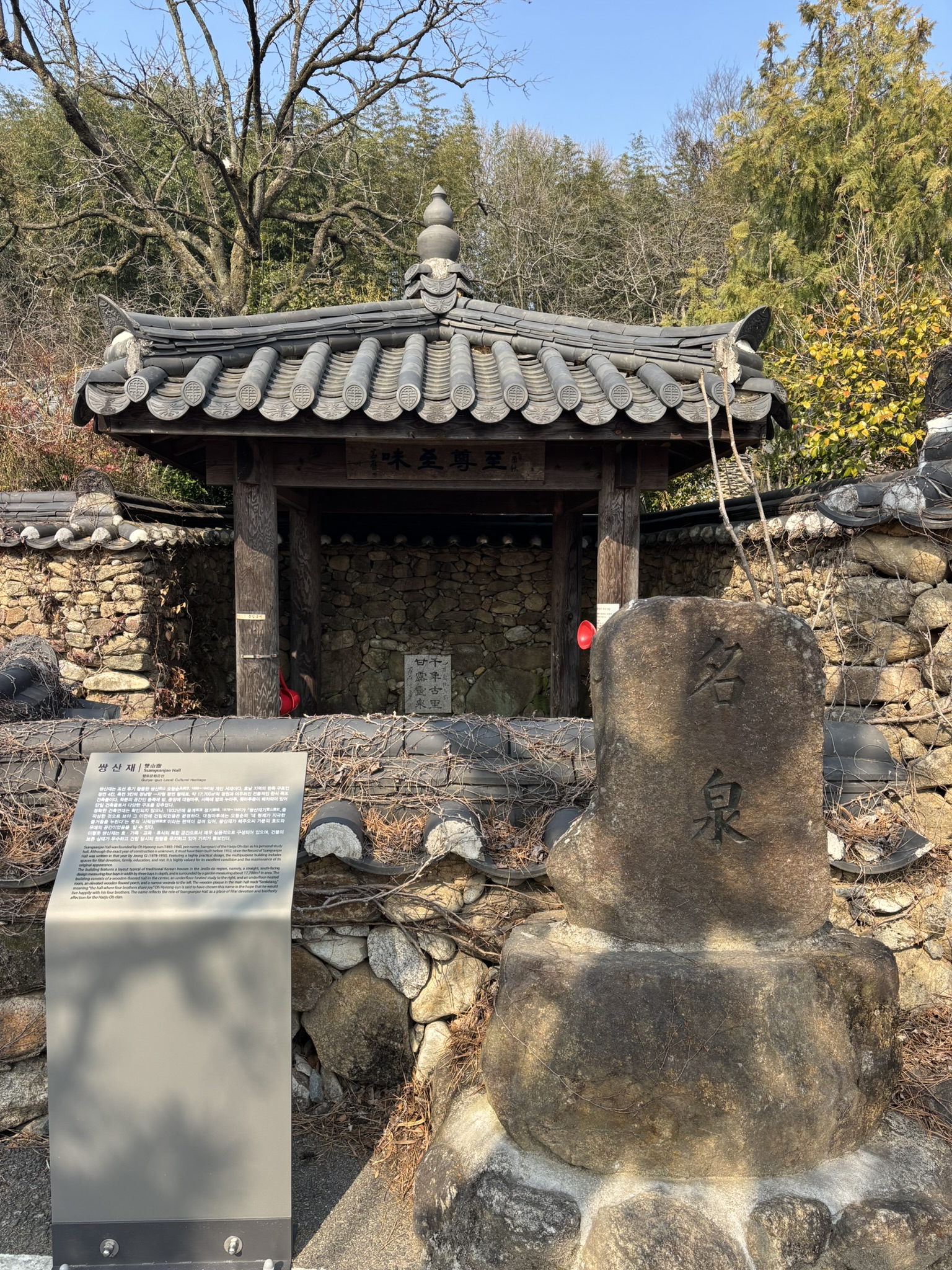 구례에 있는 쌍산재는 전통적인 한식 목조 건축물로, 지금은 후손이 생활하며 관리하는데 입장료 1만 원을 받으며 음료를 제공한다.