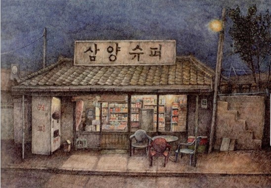 구멍가게 대부분에 나오는 평상과 담배 표지판을 보면서 그 때에는 지나가다 쉬어 가기도 하고, 담배 심부름도 다녔던 기억들이 되살아났다. 지금은 편의점과 대형마트들에 밀려 점점 사라져 다시 찾아보기는 힘들지만 그림으로나마 볼 수 있어 좋았고, 직접 보지 못하는 아쉬움을 달랠 수 있었다.