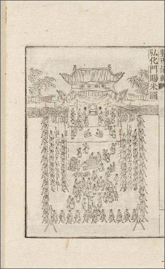 ▲ 《원행을묘정리의궤(園幸乙卯整理儀軌)》에 나오는 「홍화문사미도(弘化門賜米圖)」 그림
