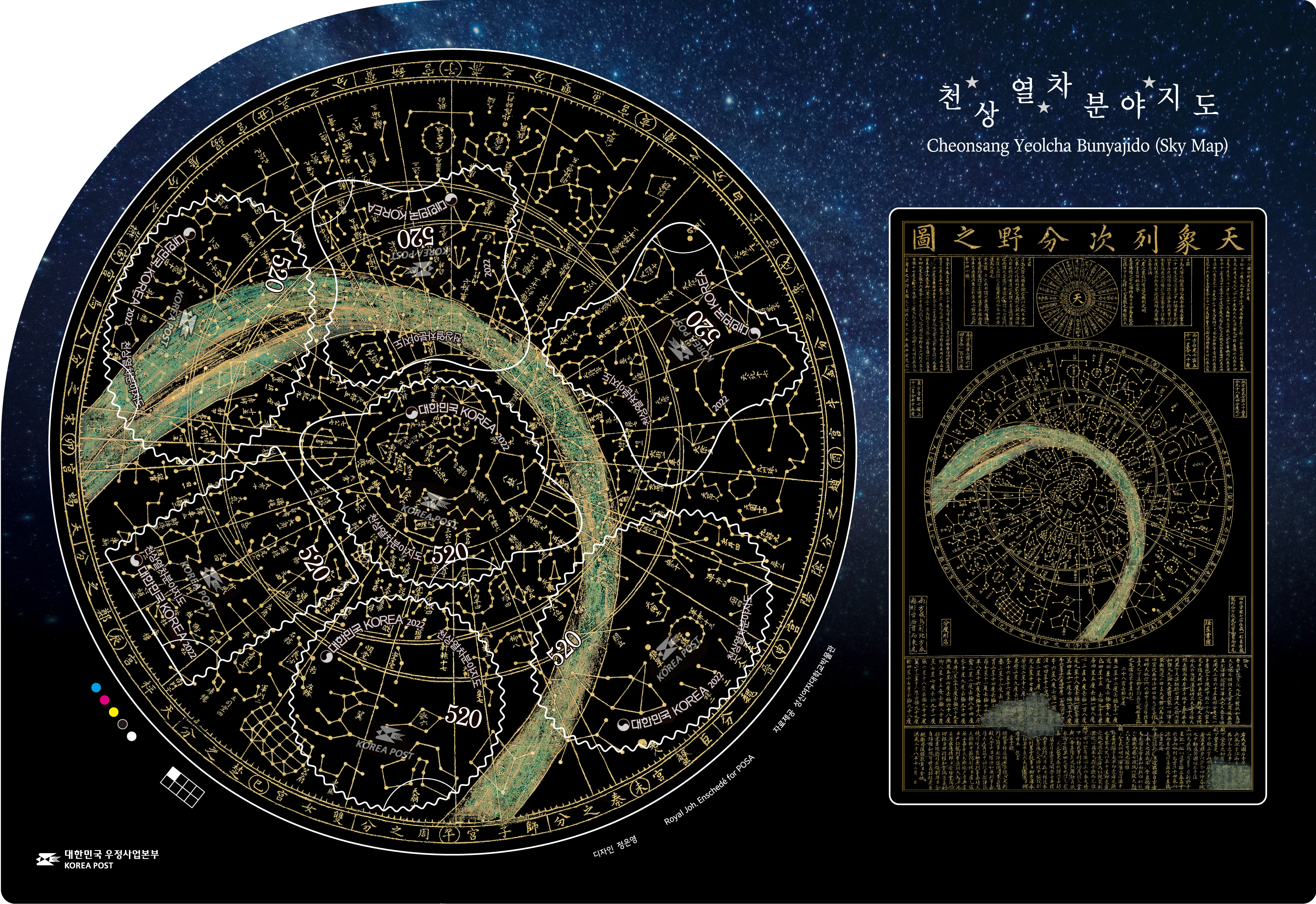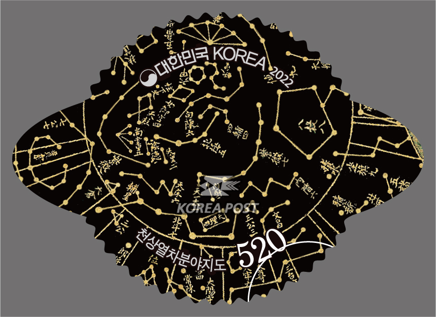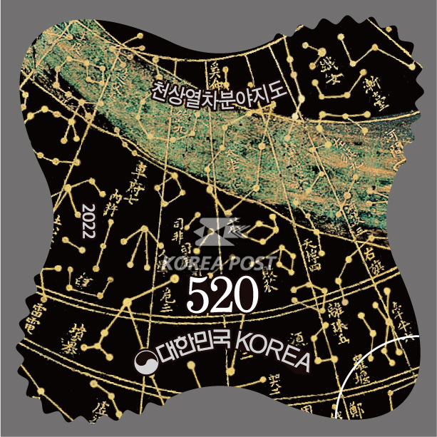 이번 기념우표는 성신여자대학교박물관에 소장되어 있는 종이 탁본 이미지를 사용하여 스티커 형식으로 제작되었습니다. 하늘을 공경하고 그 뜻에 따라 백성을 보살피려 했던 우리 조상의 통치 이념이 창의적인 과학 정신과 어우러진 귀한 유물입니다. 천상열차분야지도 우표를 감상하며, 그 안에 새겨진 조선 왕조의 건국 이념과 천문학 연구의 발전상을 확인해보시기 바랍니다.