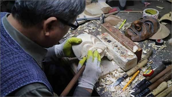 ▲ 김동표 하회세계탈박물관 관장 탈제작 시연