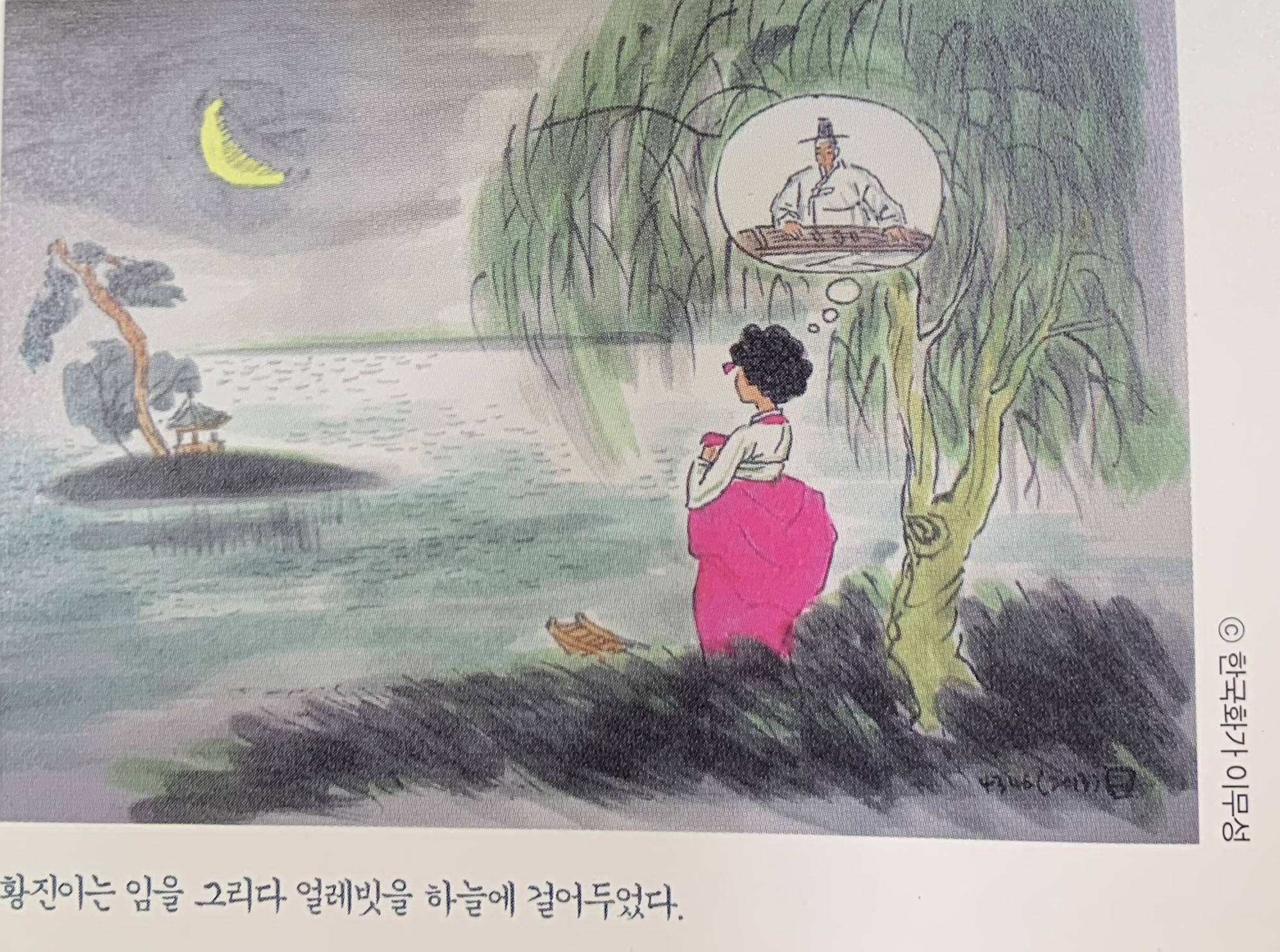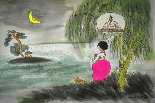 誰斷崑山玉 그 누가 곤륜산의 옥을 잘라서 裁成織女梳 직녀의 얼레빗을 만들어주었던고 牽牛離別後 견우님 떠나신 뒤에 오지를 않아 愁擲壁空虛 수심이 깊어 푸른 하늘에 걸어 놓았네 ▲ 황진이는 임을 그리다 얼레빗을 하늘에 걸어두었다.(그림 이무성 작가) 황진이가 지은 영반월(詠半月, 반달을 노래함)이란 한시입니다. 이제 완연한 가을입니다. 황진이는 하늘에 걸린 반달을 보고 직녀가 견우를 기다리다 지쳐 얼레빗을 하늘에 걸어놓았다고 합니다. 얼마나 기다림이 사무치던지 얼레빗을 하늘에 걸어 견우에게 손짓합니다. 그런가 하면 황진이, 신사임당과 더불어 조선 3대 여류 시인으로 꼽히는 강정일당(姜靜一堂)도 가을을 노래합니다. “어느덧 나무마다 가을빛인데(萬木迎秋氣) / 석양에 어지러운 매미 소리들(蟬聲亂夕陽) / 제철이..