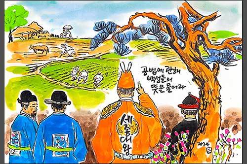 《세종실록》 47권, 세종 12년(1430) 3월 5일에 보면 "정부ㆍ육조와 각 관사와 서울 안의 전직 벼슬아치들과 각도의 벼슬아치들로부터 백성에 이르기까지 모두 가부(可否)를 물어서 아뢰게 하라."라는 기록이 있습니다. 이는 세종임금이 토지에 관한 세금제도 곧 공법(貢法)을 시행하기 전 백성들에게 의견을 묻는 지금으로 말하면 국민투표를 1430년 3월 5일부터 무려 5달 동안 시행한 것입니다. 이에 호조가 공법 시행에 관한 투표의 결과를 보고했는데 17만 여명의 백성이 참여해 9만 8천여 명이 찬성하고, 7만 4천여 명이 반대했으며, 전라도와 경상도는 찬성이 많았고, 평안도나 함경도는 반대가 많았습니다. 그때 인구를 생각할 때 17만 명의 투표 참여는 노비나 여성을 빼고 거의 모든 백성이 참여했을 것이..