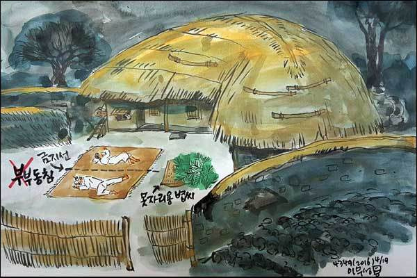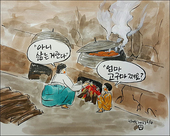 옛날이나 요즘이나 오란비철에 여러 날 비가 오면 겪게 되는 어려움이 바로 숨씨 가운데(공기 중에) 물이 많은 것과 이어지기도 하죠. 지난 글에서 이야기했던 빨래가 잘 안 마르는 것도 그렇고 벽지가 떨어지기도 하고 사이사이에 곰팡이가 자라기도 하지요. 그럴 때면 요즘이야 뽀송이(제습기)나 찬바람틀(에어컨)으로 말리면 되지만 옛날에는 그런게 없었으니 아궁이에 불을 넣는 수밖에 없었답니다. 그렇게 아궁이에 때는 불을 ‘군불’이라고 했습니다. 시골에서 태어나 자라신 분들은 어릴 때 "군불 넣어라.", "군불 좀 때야 겠다."는 말을 자주 들으셨을 겁니다. 오란비(장마)철 뿐만 아니라 겨울철에 방을 데울 때에도 군불을 땐다는 말을 하는데 처음에 ‘군불’이라는 말을 들었을 때 그냥 불을 땐다고 해도 될 텐데 왜..
